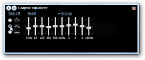 The graphic equalizer is toggled on and off by clicking Turn on / Turn off at the top left.