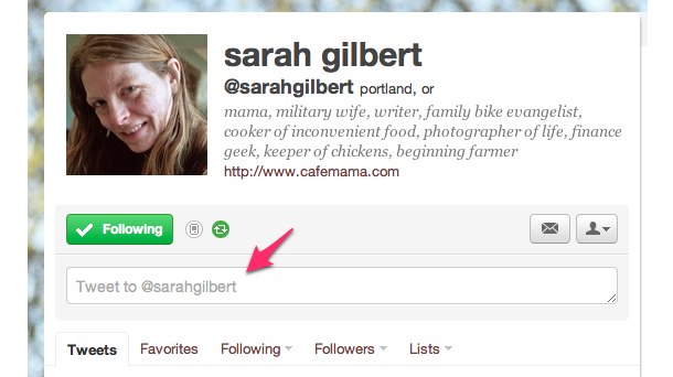 Above, finance blogger and post-industrial renaissance woman Sarah Gilbert is a great person to follow. Now you can send her, or anyone else, public replies whether she follows you back or not.